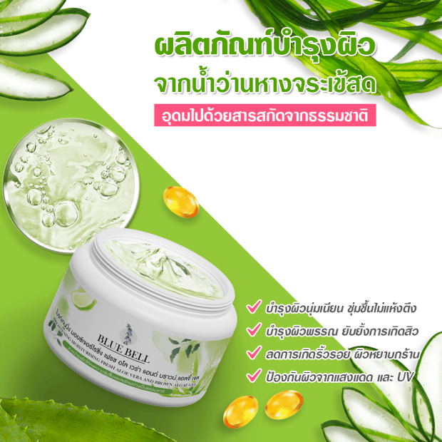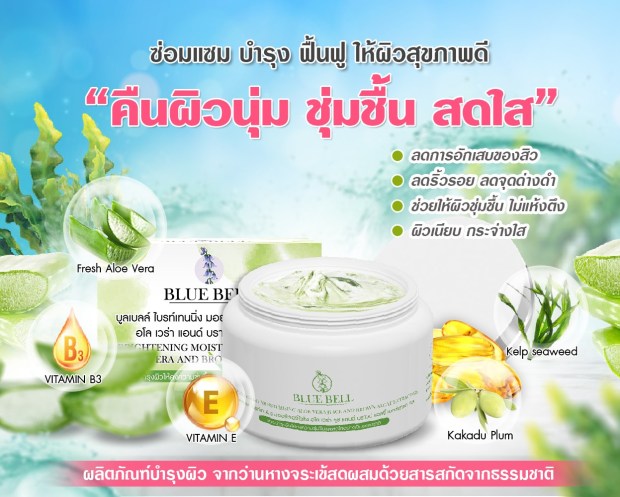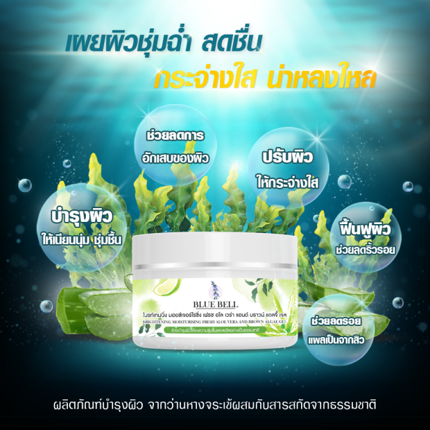 บลูเบลล์ ไบรท์เทนนิ่ง มอยเจอไรซิ่ง เฟรซอโลเวร่า แอนบราวน์ แอลจี้ เจล ราคา 250 บาทต่อชิ้น จนถึงสิ้นปี 2564 ราคารวมค่าขนส่งภายในประเทศ