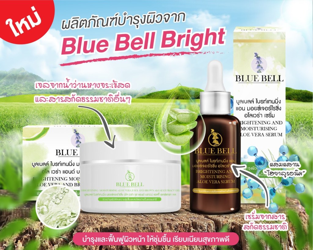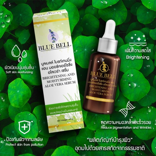 Blue Bell Bright It is made from our good selected natural botanies and various vitamins to nourish the skin to be brighten, moisturized, reduce dark spots and wrinkles, increase anti-oxidant and protecting the skin from pollution that occurs in daily life.